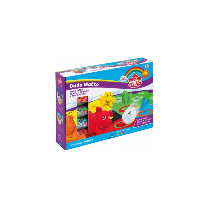 Didò matto contiene 15 salsicciotti da 50gr per giocare 1 dado con 6 faccie stampanti 5 coltellini 1 tabellone gioco 5 sacchettini salvadidò 1 libretto istruzioni